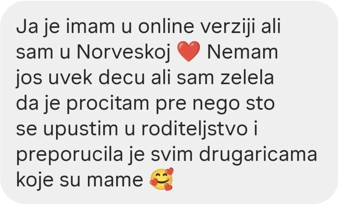 Ova knjiga neće učiniti roditeljstvo lakim — ali može da ti pomogne da kroz mnoge situacije prođeš mirnije i sigurnije.