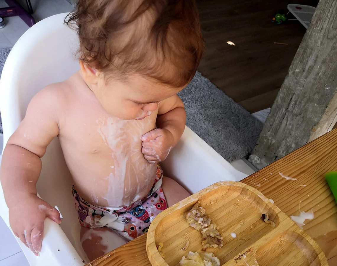 Eh… da. Ovde nemam šta ohrabrujuće da vam kažem. Biće haosa. Nekad manje, nekad više. Zavisi od hrane koja je data bebi, zavisi koliko je beba raspoložena da jede a koliko da se igra.